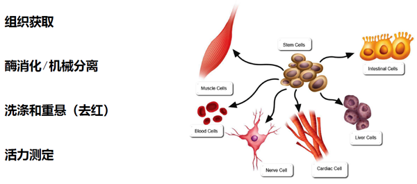 從組織獲得存活單細胞是一個復雜過程,目前市面上組織單細胞化的方法有采用機器處理或者人工處理方法,以上處理方法均存在處理時間長、細胞處于逆境狀態時間長、細胞得率低、細胞存活率低、操作繁瑣等問題。單細胞懸液儀結合特定組織松解劑,快速、輕柔、安全、簡捷、高效、自動化的從組織如(脂肪、骨骼肌、動脈血管內皮、心臟、肝臟、脾臟、肺泡、腎臟、腦、腫瘤)30min內全自動完成組織單細胞的解離。