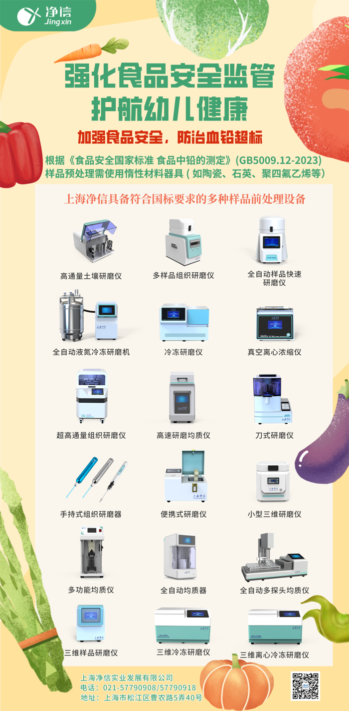 我司研磨儀通過《食品安全國家標準食品中鉛的測定》(GB5009.12-2023)助力鉛含量檢測,讓檢測結果更精確。