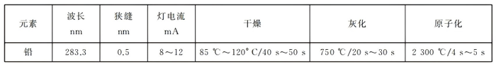 定石墨爐原子吸收光譜法儀器參考條件
